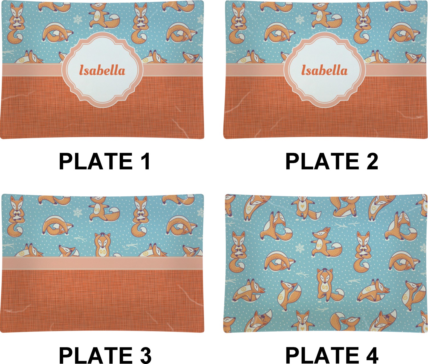With the bright orange and contrasting blue, you're bound to turn heads. Each fox is doing a specific yoga position from the tree pose to the cobra pose. There is nothing this fox can't do!