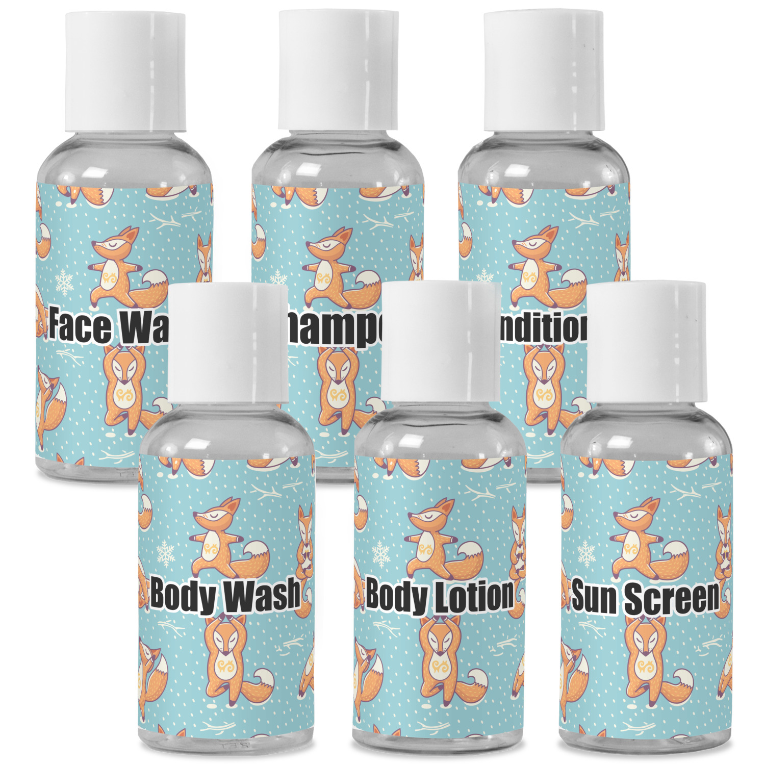These soap and lotion travel bottles are the perfect place to start. Each set comes with 6 clear plastic bottles with white pop top lids. The bottles are cylindrical and can hold approximately 2.7oz. Perfect for plane travel!
