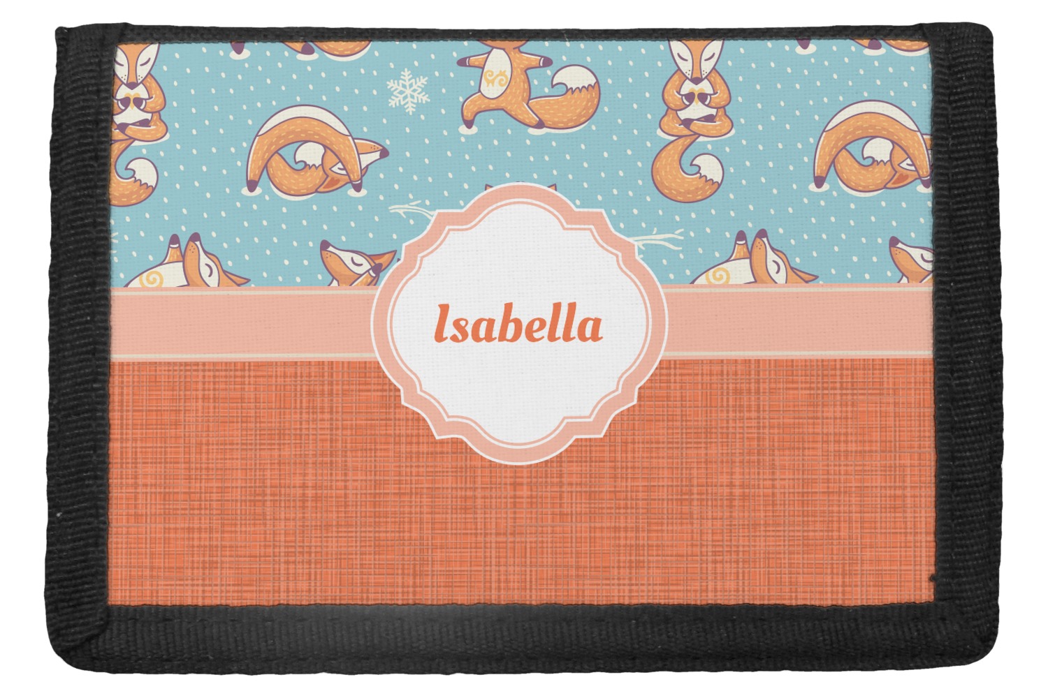 The wallets are black with the design printed on the front flap. You are able to create your design either horizontally OR vertically. They have 4 slots for IDs or credit cards and 1 large slot for cash. The wallet folds in thirds and is tightly secured by velcro. They are great starter wallets for kids or just as a good durable wallet for an adult.