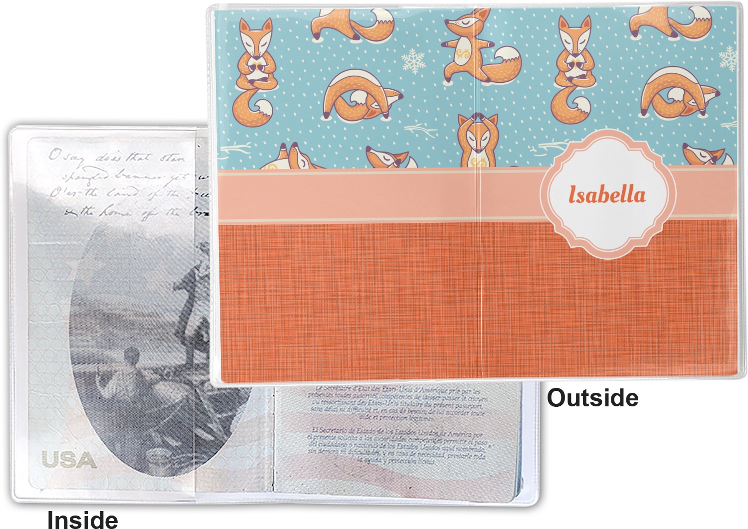 This cover is made of a sturdy clear vinyl with a personalized vinyl insert inside. There is a large and a small pocket on either side to hold the covers of your passport easily and firmly. The passport holder is approximately 7.5" x 5.25", the perfect size to snugly fit your passport. This slim cover is the perfect way to protect your passport without being one more bulky item you have to carry.