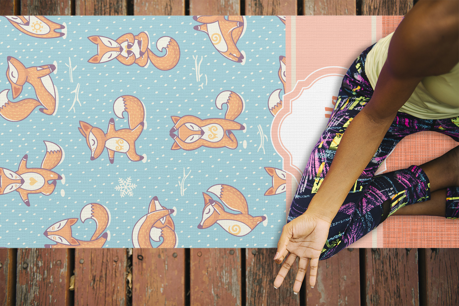 With the bright orange and contrasting blue, you're bound to turn heads. Each fox is doing a specific yoga position from the tree pose to the cobra pose. There is nothing this fox can't do!