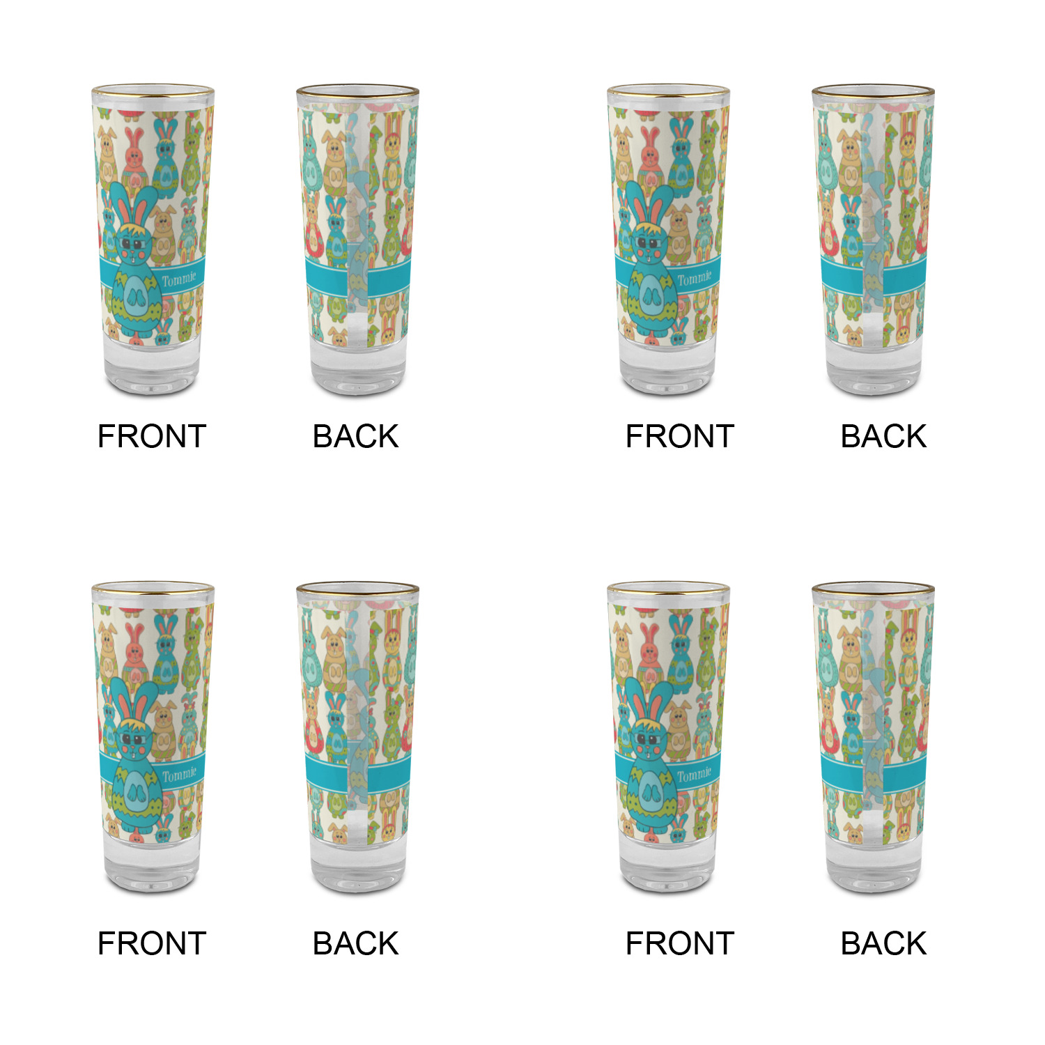 Easter Bunny Designs for 2 oz Shot Glasses - Glass with Gold Rim