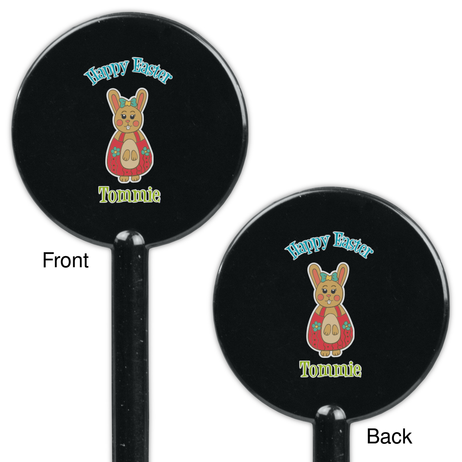 Easter Bunny Designs for 5.5" Round Plastic Stir Sticks - Black - Double-Sided