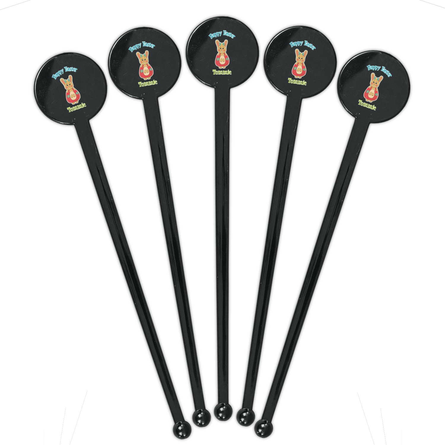 Easter Bunny Designs for 7" Round Plastic Stir Sticks - Black - Single-Sided