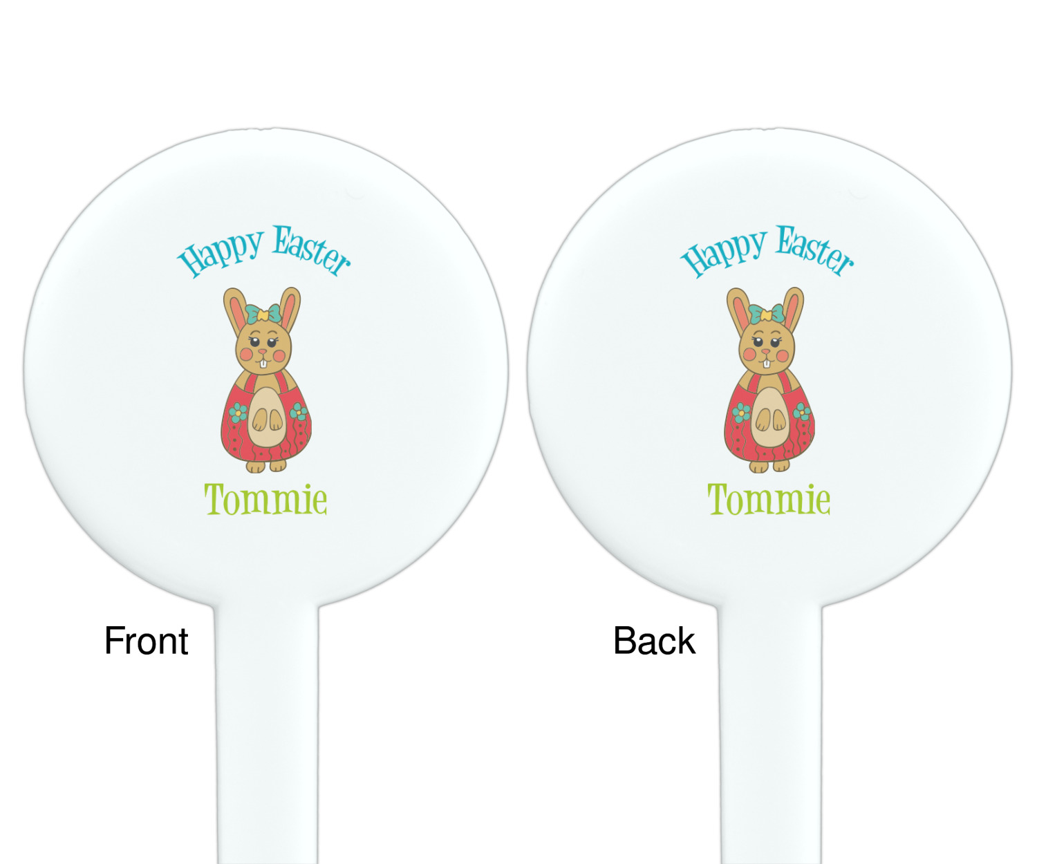 Easter Bunny Designs for 7" Round Plastic Stir Sticks - White - Double-Sided