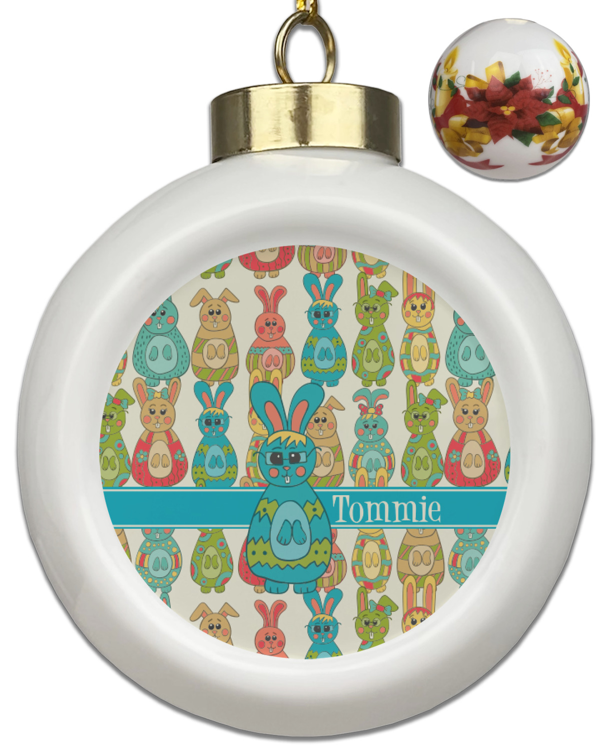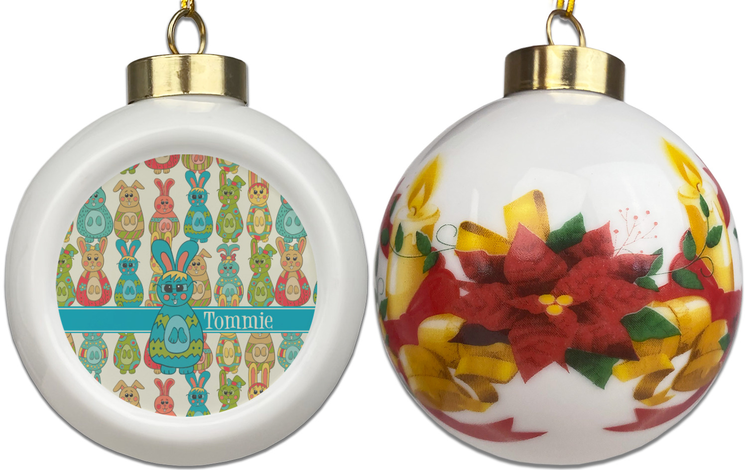 Easter Bunny Designs for Ceramic Ball Ornaments - Poinsettia Garland