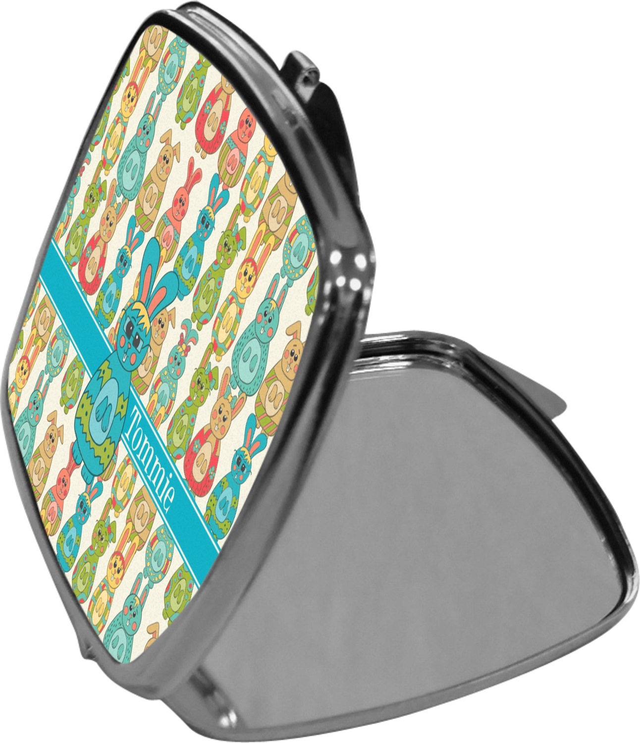 We offer many prints and patterns and many of our patterns are available in 45 different colors. You can personalized the compact mirrors with a name, a monogram or just an initial. We offer several different label, ribbon and font choices. Our customization system lets you create your very own custom & unique product and it lets you preview it before you purchase.