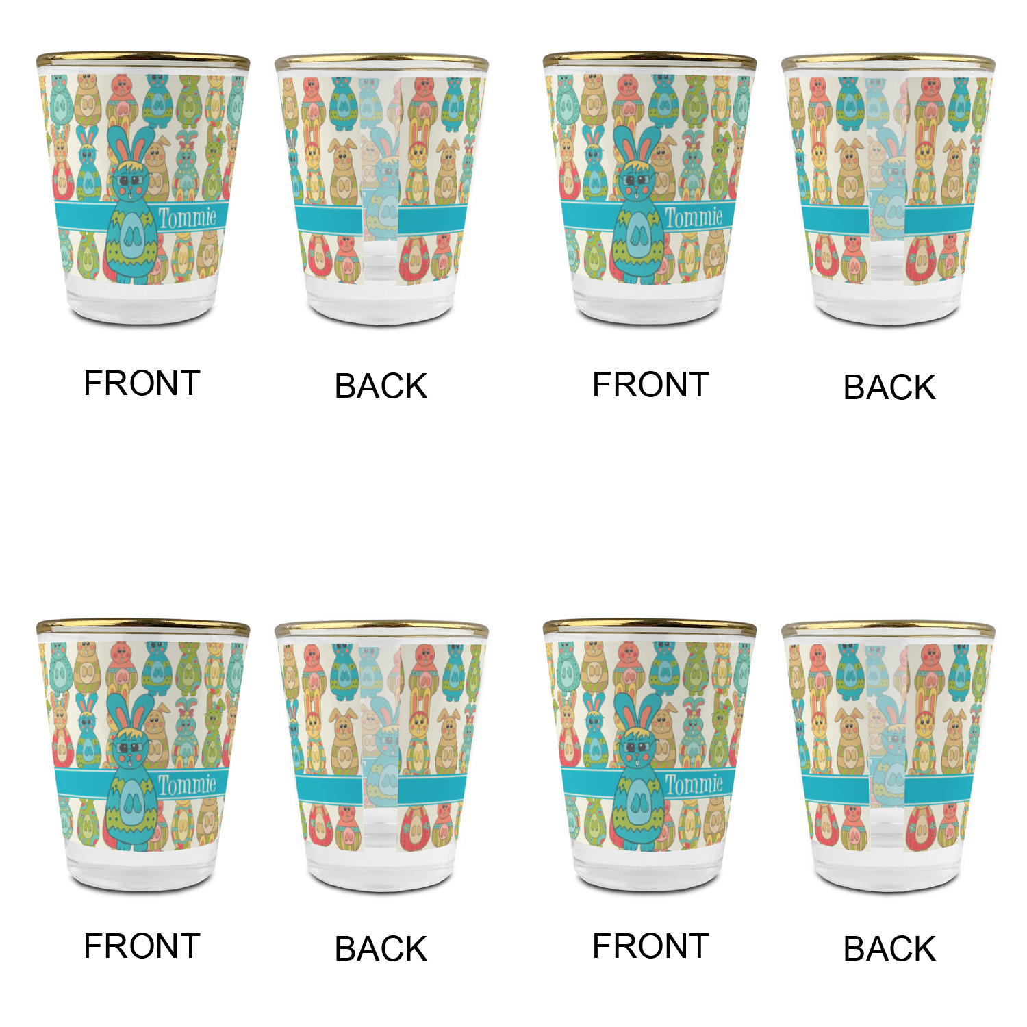 Easter Bunny Designs for Glass Shot Glasses - 1.5 oz - with Gold Rim - Set of 4