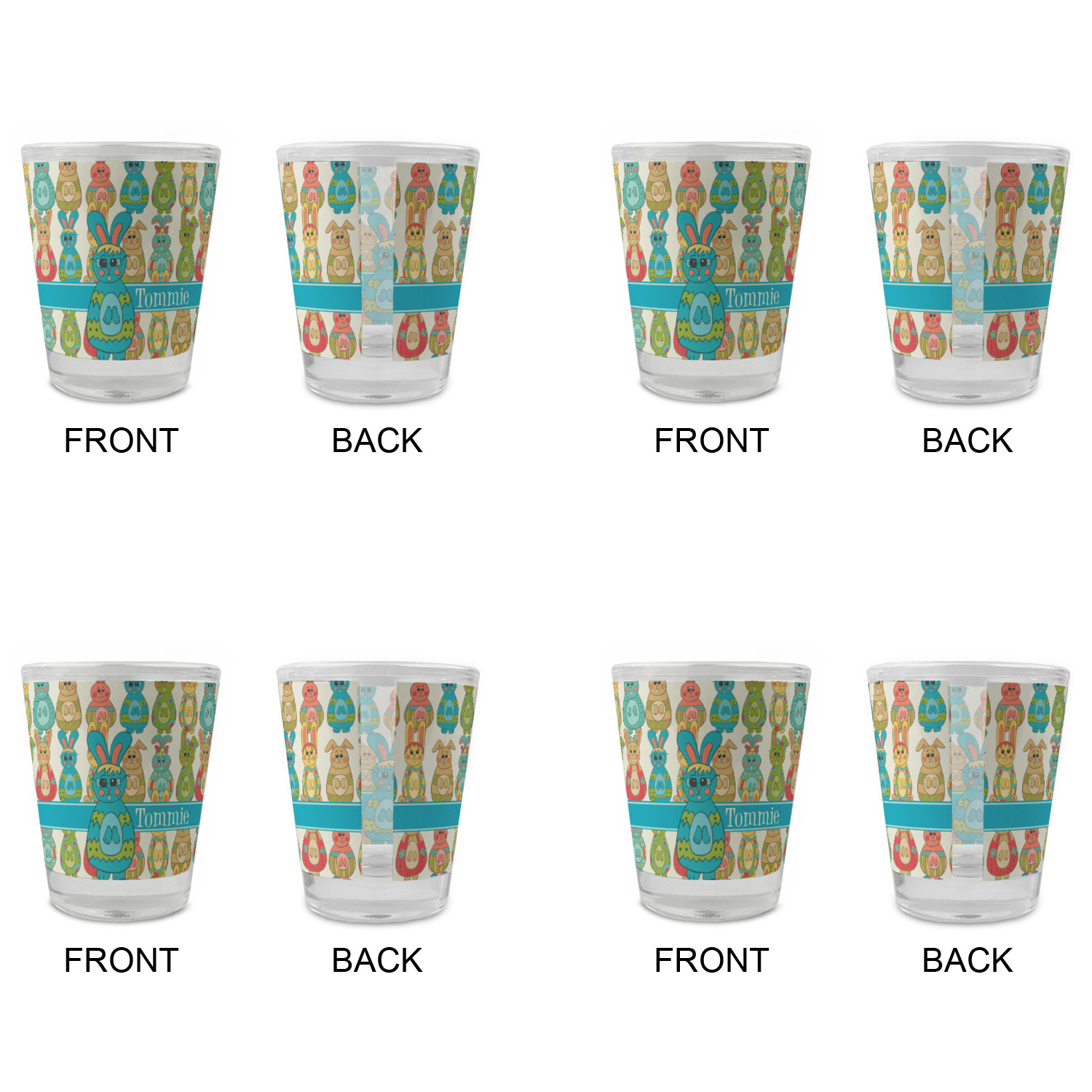 Easter Bunny Designs for Glass Shot Glasses - 1.5 oz - Set of 4