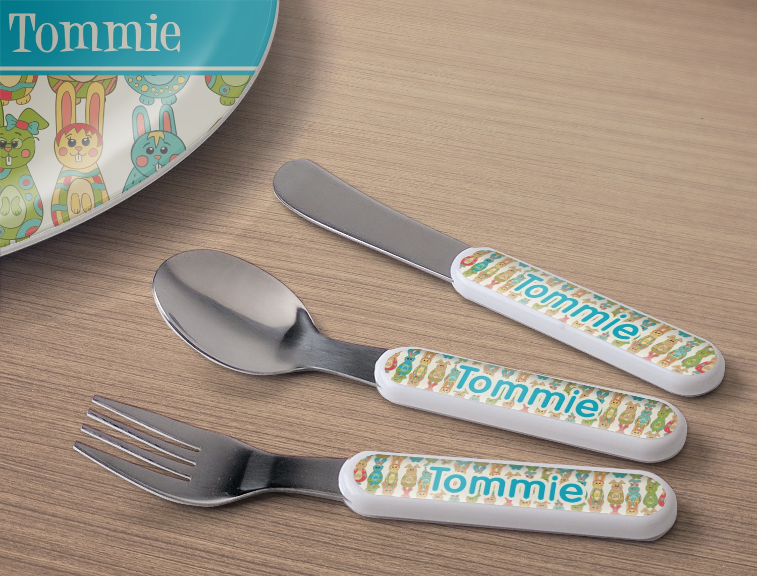 In the market for some other, adorable, kids accessories? Consider purchasing a melamine plate and a plastic kids' mug to complement your child's new cutlery set! Or, have a look at our variety of personalized children's gifts. We even carry kids' hooded towels that are perfect for your kids' bath, pool or beach days!