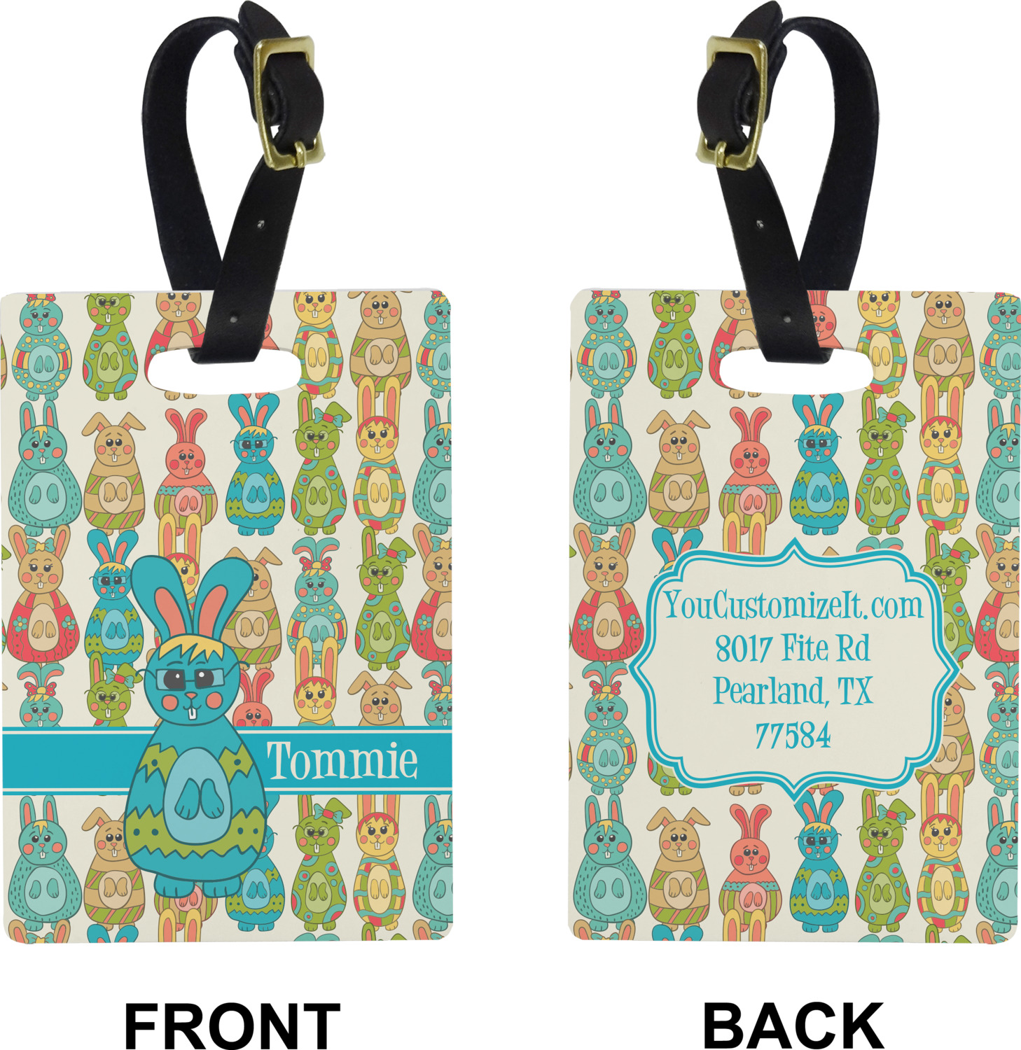 These cute luggage tags are made of a fiber-reinforced, UV-resistant plastic, making them waterproof and durable enough for both everyday use and the rugged adventures of any traveler! A leather strap with holes and a buckle is included with your purchase and can be used to attach your custom luggage tag to any suitcase, backpack, or duffel bag. You can design these travel tags as you wish; your customization will be displayed across the front, while the back will show as little or as much personal information as you want.