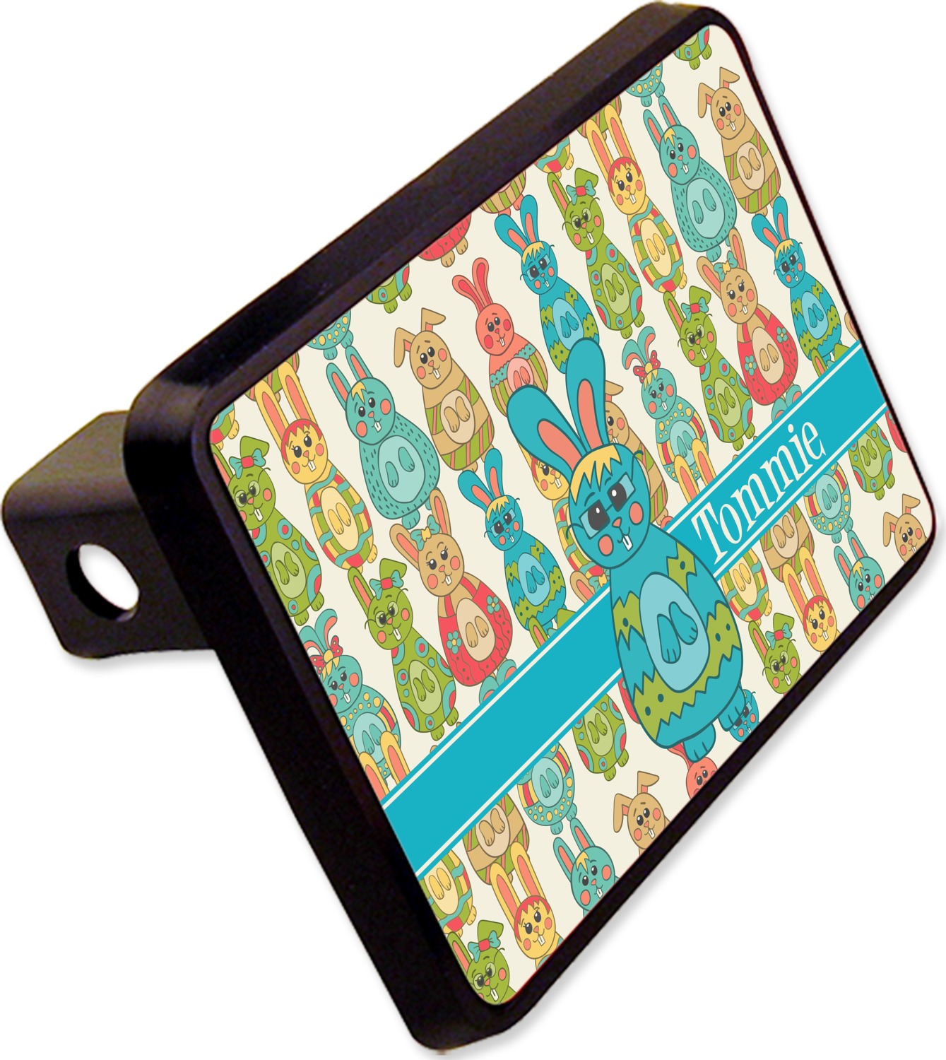Our receiver hitch covers are molded, durable, and available in a size that fits 2in., square receiver holes. This model is best suited for a Class 3 or Class 4 hitch, but please consult our hitch sizing guide to make an informed purchase. We print your design on the surface of the rectangular cover, while the rest of the cover is a sleek, black color. The design's vibrancy will last up to 2 years in harsh sunlight. Designed for easy attachment, the cover slides easily into your trailer hitch and can be secured using a pin (not included).