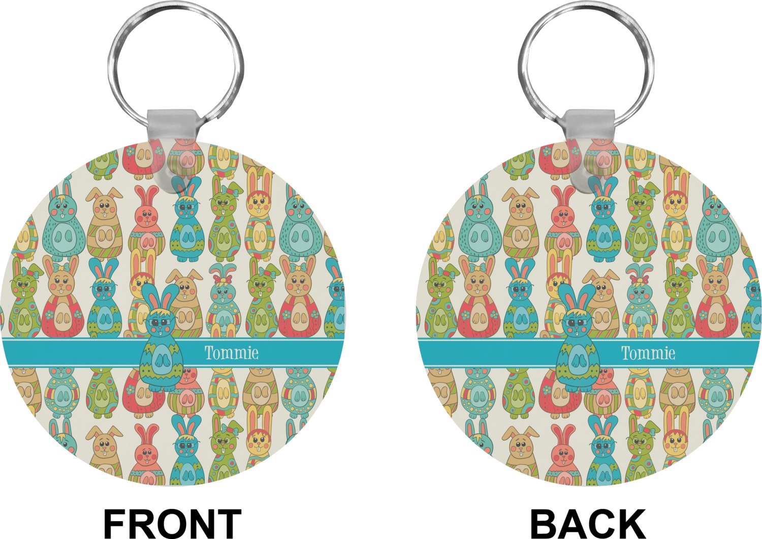 Our personalized keychains attach to the included metal, split key ring with a plastic, removable snap. Since a metal ring is included with your purchase, you have the liberty to keep your keys together on the ring, with or without your unique keychain. We offer this keychain in three different shapes: circle, heart, or diamond. We print your personalized design(s) on both sides of the key chain, and the surface has a glossy, reflective finish that only emphasizes your design. Each keychain is approximately 2.25 by 2.25 inches.