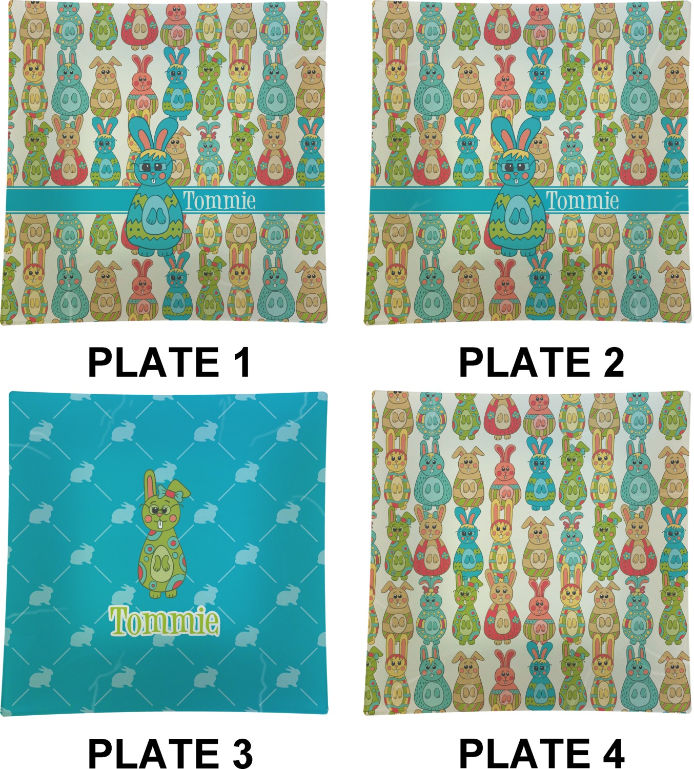 Easter Bunny Designs for Glass Square Lunch / Dinner Plates 9.5" - Set of 4