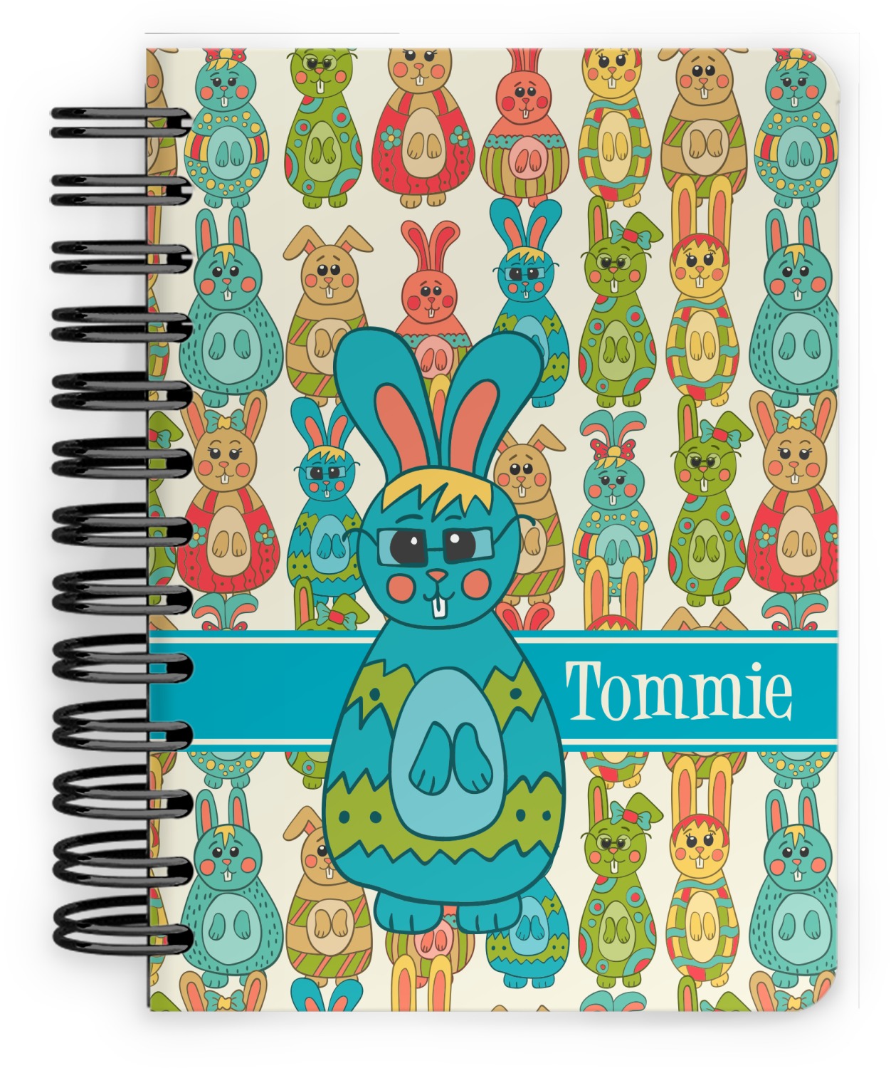 This spiral notebook includes 75 sheets of thick, ruled paper. The front and back of this custom notebook is made of a robust, laminate, plastic covering. We print your personalization on these two panels, underneath a glossy finish, which emphasizes the colors of your design. The two panels and the sheets of paper are held together by a sturdy, black coil. The paper within your bound notebook is perforated for easy, clean tearing.