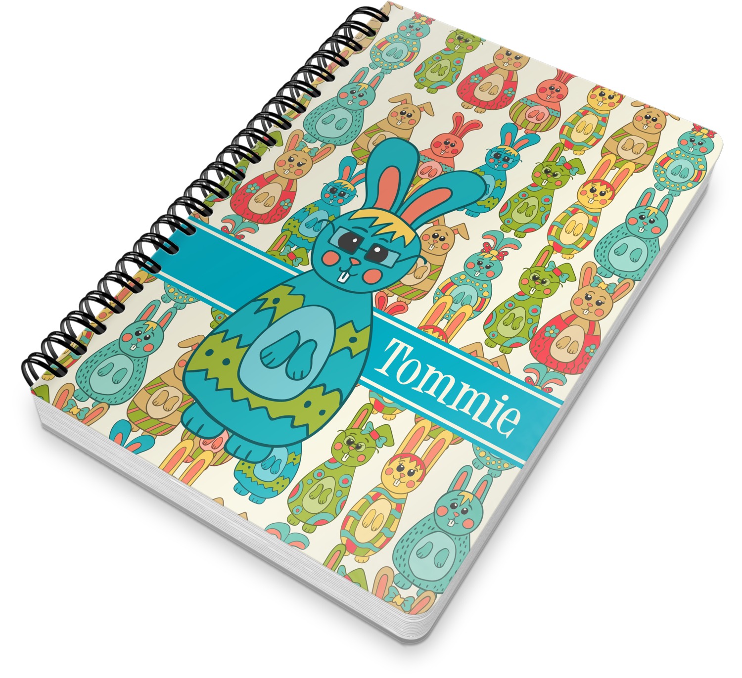 This spiral notebook includes 75 sheets of thick, ruled paper. The front and back of this custom notebook is made of a robust, laminate, plastic covering. We print your personalization on these two panels, underneath a glossy finish, which emphasizes the colors of your design. The two panels and the sheets of paper are held together by a sturdy, black coil. The paper within your bound notebook is perforated for easy, clean tearing.