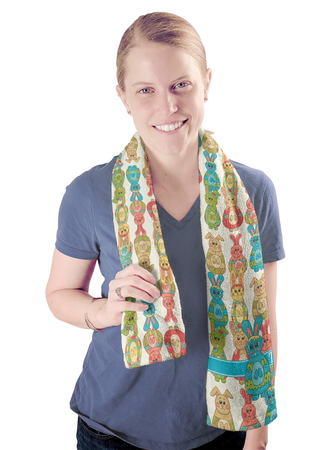These towels are 44" x 12", which are the perfect size for hanging around your neck on the treadmill or wiping your brow after a hard workout. They are full-print towels with your very own design printed right on the front! They are perfect for soaking up moisture and are quite soft against your skin.