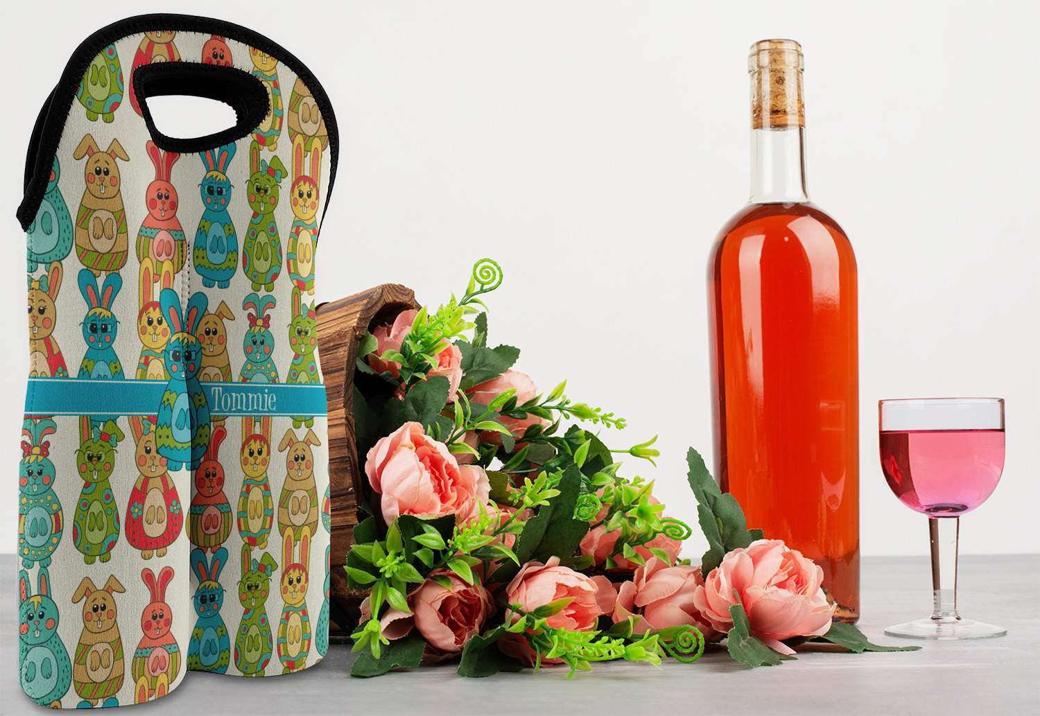 Be the hero of the party when you walk in with not one, but two bottles of spirits in our personalized wine/liquor bottle tote bags. Party guests just might be as excited about the outside of the tote as they are for what's inside!!