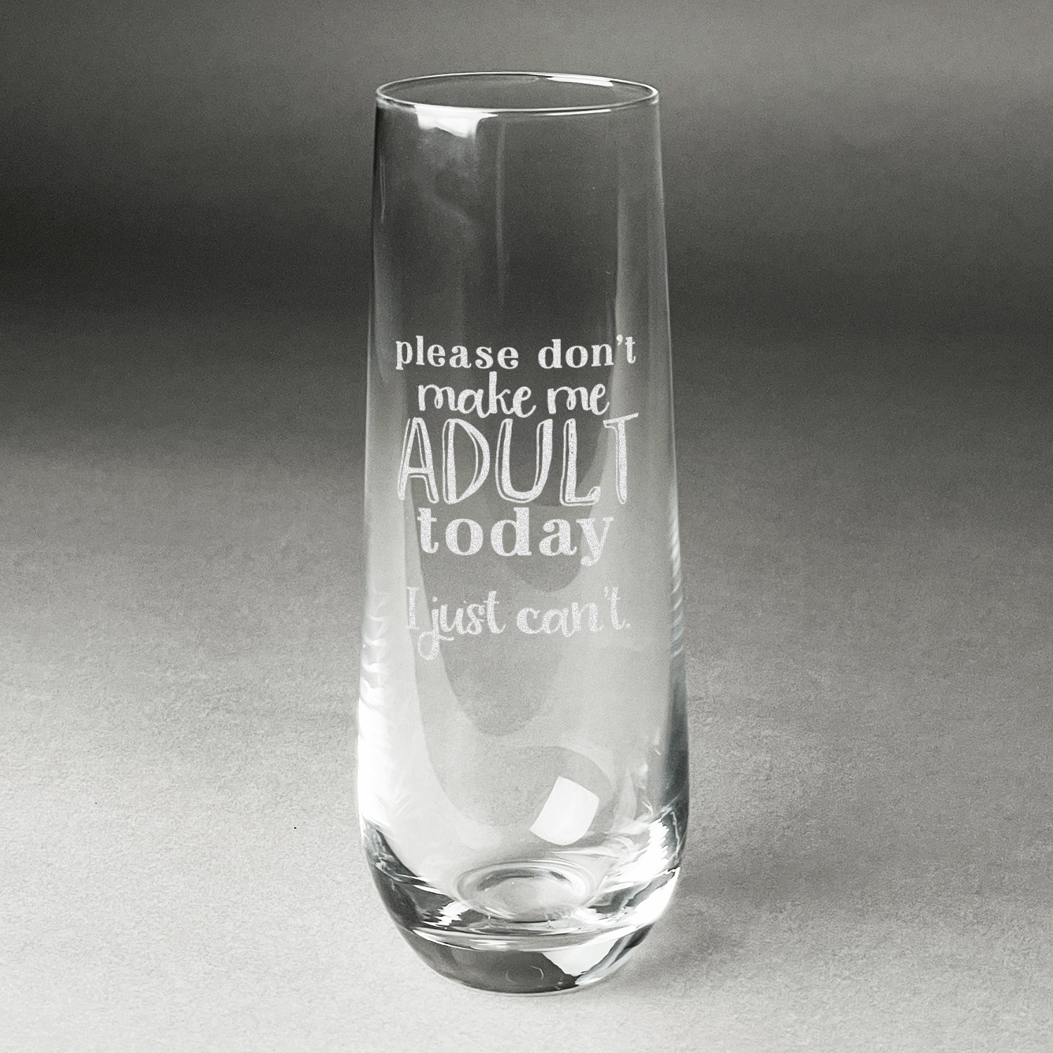 Design your custom stemless champagne flutes and we will then laser engrave your unique design on them for you. Whether they are a special gift for a bride and groom, for your New Years Eve party, or a bachelorette party you are sure to be able to add a custom personalized touch to make them perfect for the occasion.