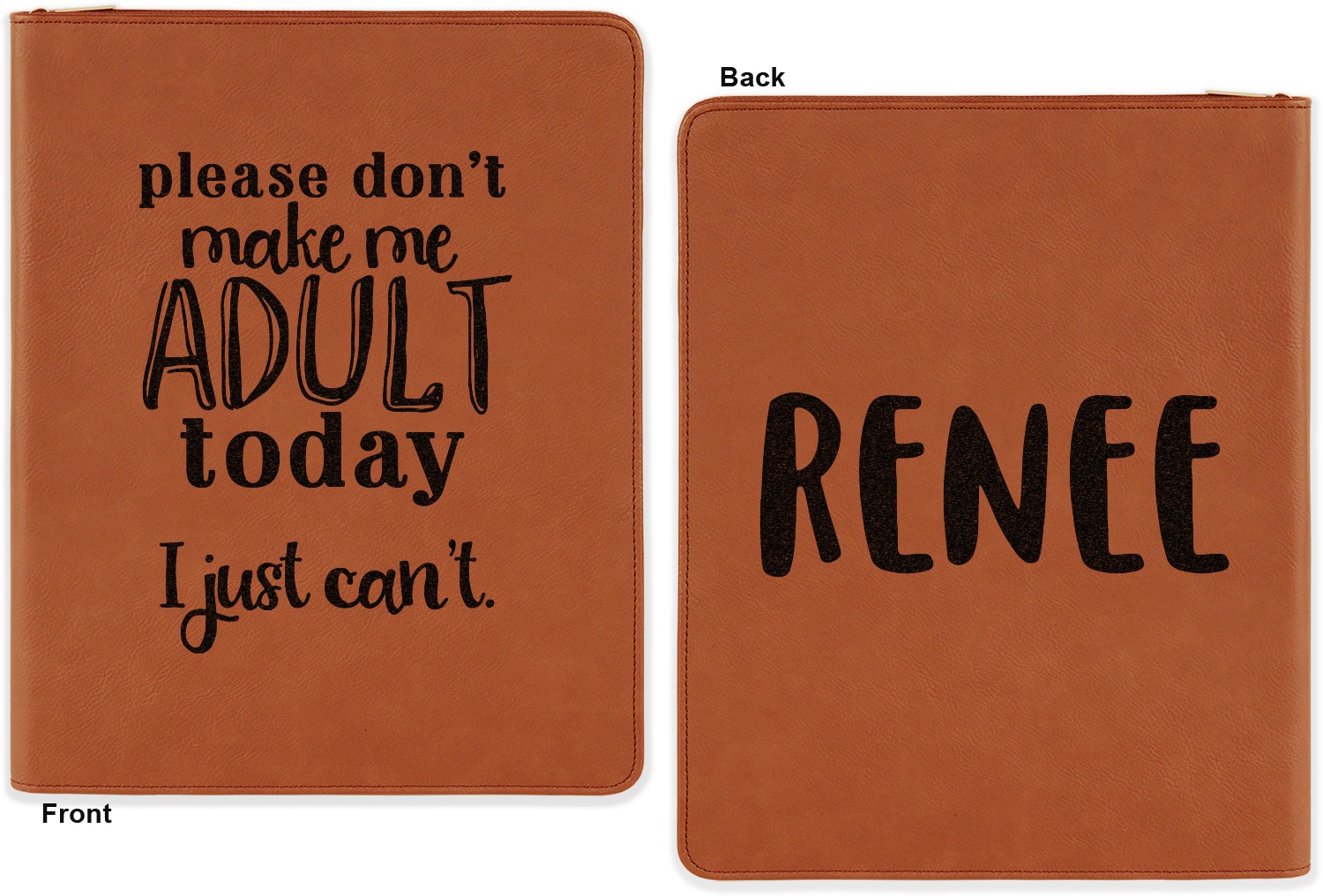 Have fun personalizing the front or the front and back of your portfolio. Choose a fun graphic, monogram, quote, or text to be laser engraved right onto your portfolio.