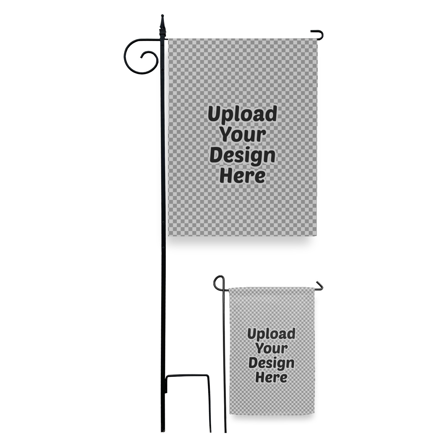 These custom garden flags are made of a durable, double-ply, polyester weave, allowing them to withstand the elements year round. The small flags measure at approximately 12 by 18 inches. The large flags measure out to 28 by 37 inches. You can order these decorative flags with your customization printed on the front only, or the front and back.