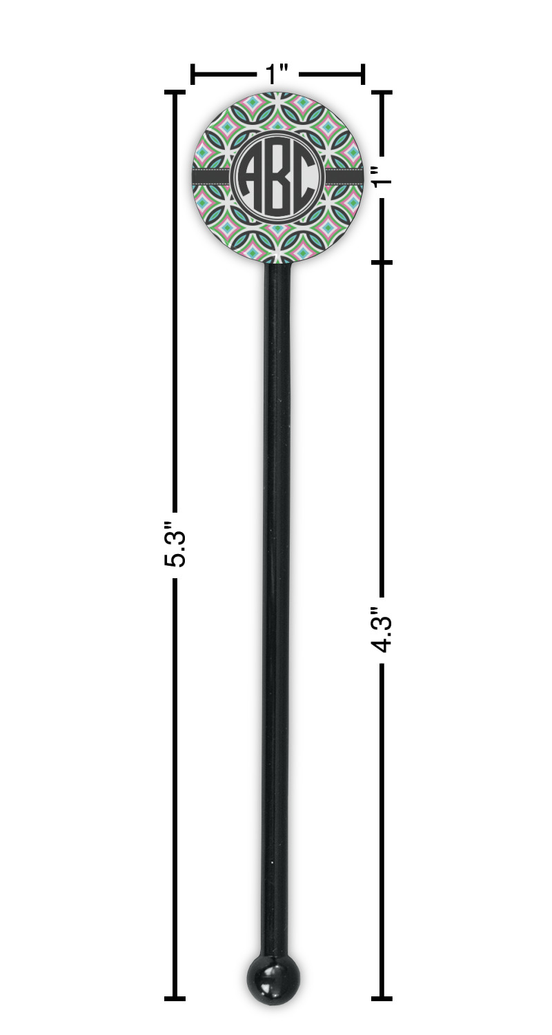 Shape + Symbol Designs for 5.5" Round Plastic Stir Sticks - Black - Single-Sided