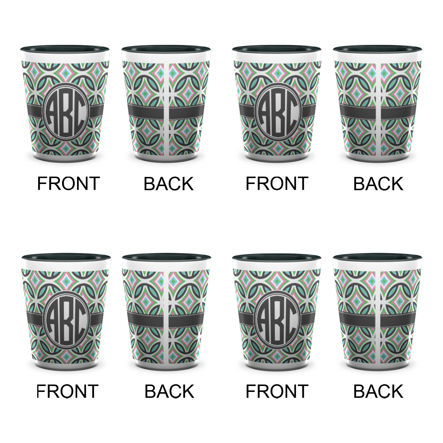 Shape + Symbol Designs for Ceramic Shot Glasses - 1.5 oz - Two Tone - Set of 4