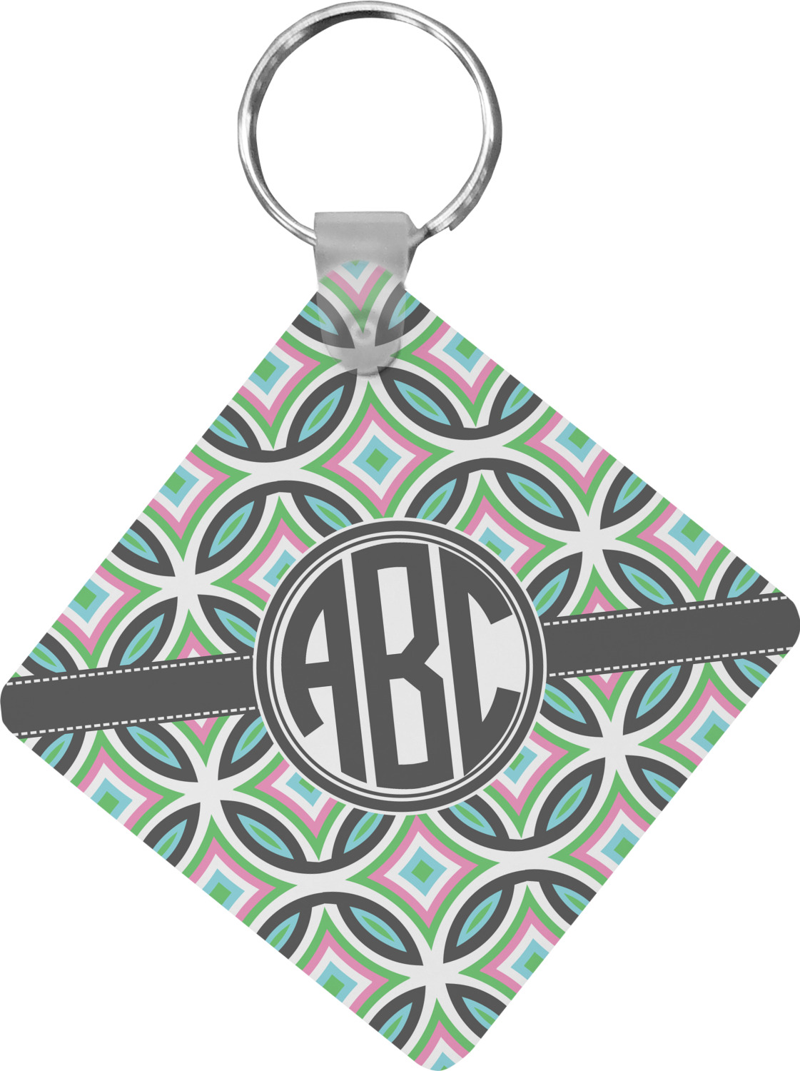 Our personalized keychains attach to the included metal, split key ring with a plastic, removable snap. Since a metal ring is included with your purchase, you have the liberty to keep your keys together on the ring, with or without your unique keychain. We offer this keychain in three different shapes: circle, heart, or diamond. We print your personalized design(s) on both sides of the key chain, and the surface has a glossy, reflective finish that only emphasizes your design. Each keychain is approximately 2.25 by 2.25 inches.