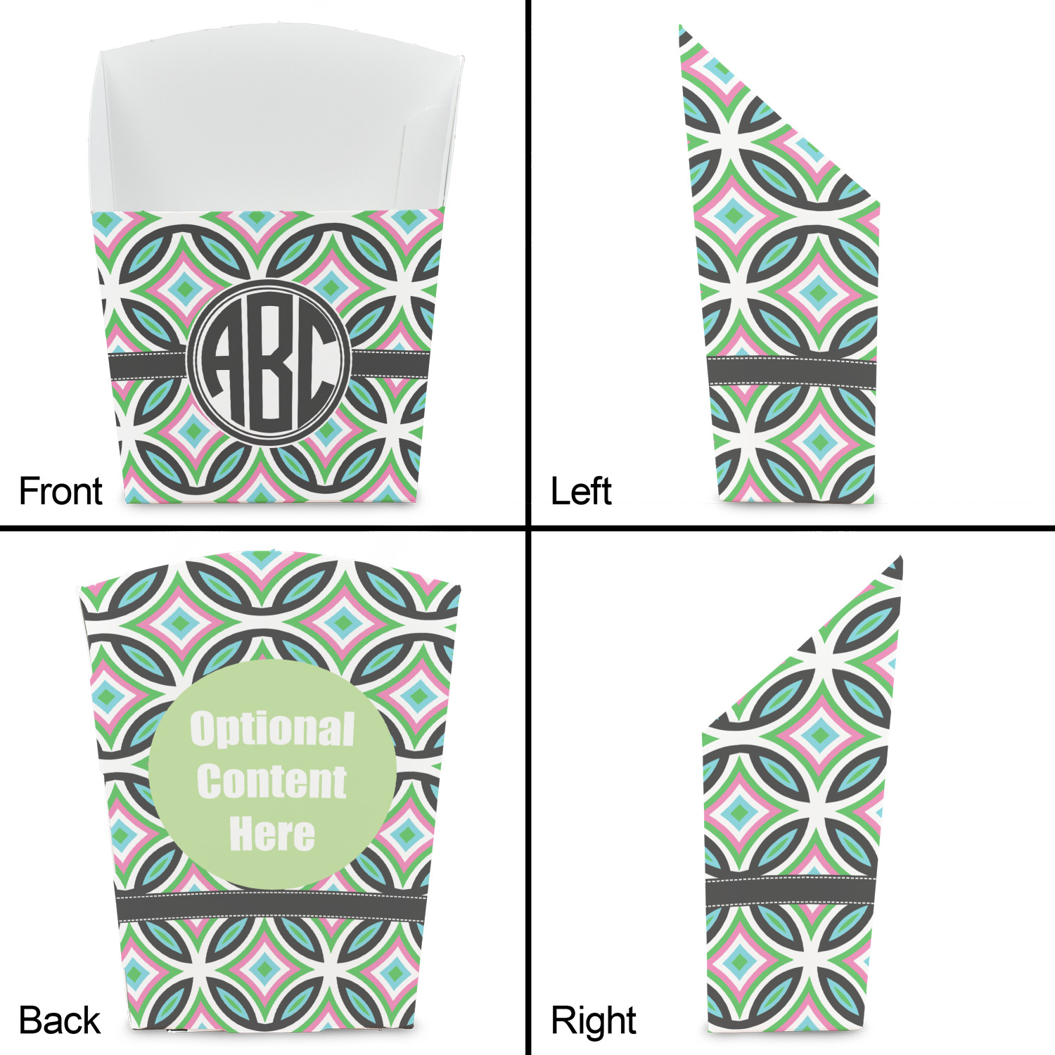These favor boxes are printed in full color on quality cardstock - so coordinating the french fry favor boxes to match your event's themes or colors should be a breeze. You can upload your own design including artwork, logos or photos