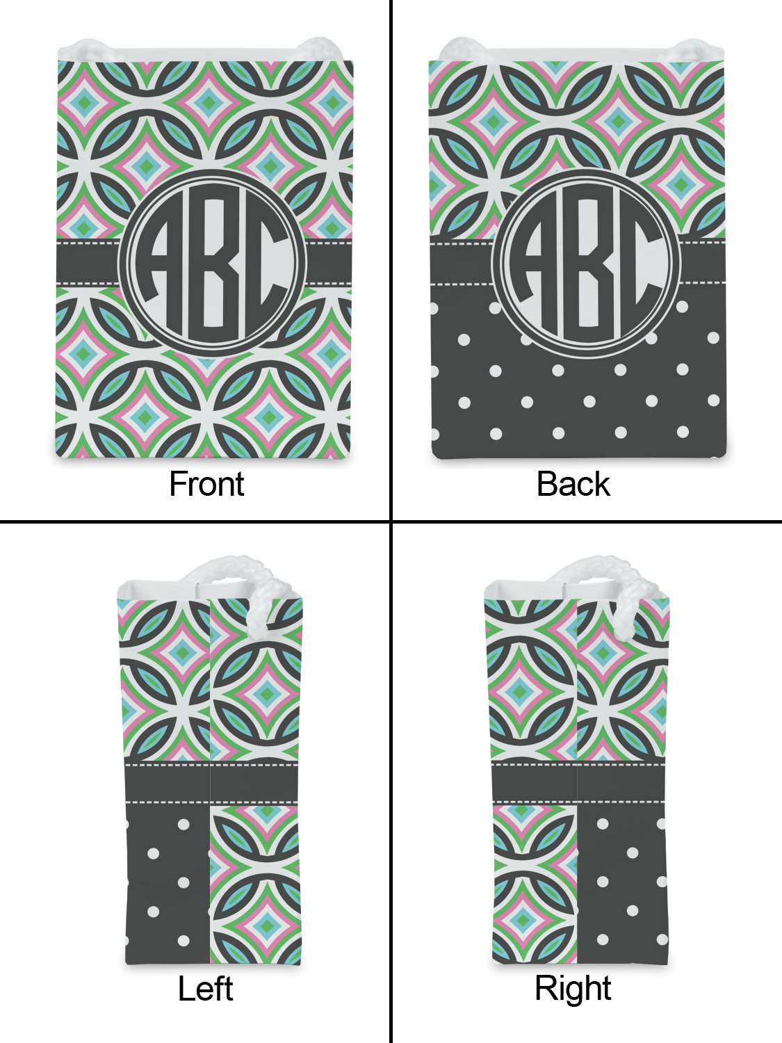These jewelry gift bags are available in two finishes - matte or gloss. The are digitally printed in full color, then cut down to size, scored & folded. A single handle is attached.
