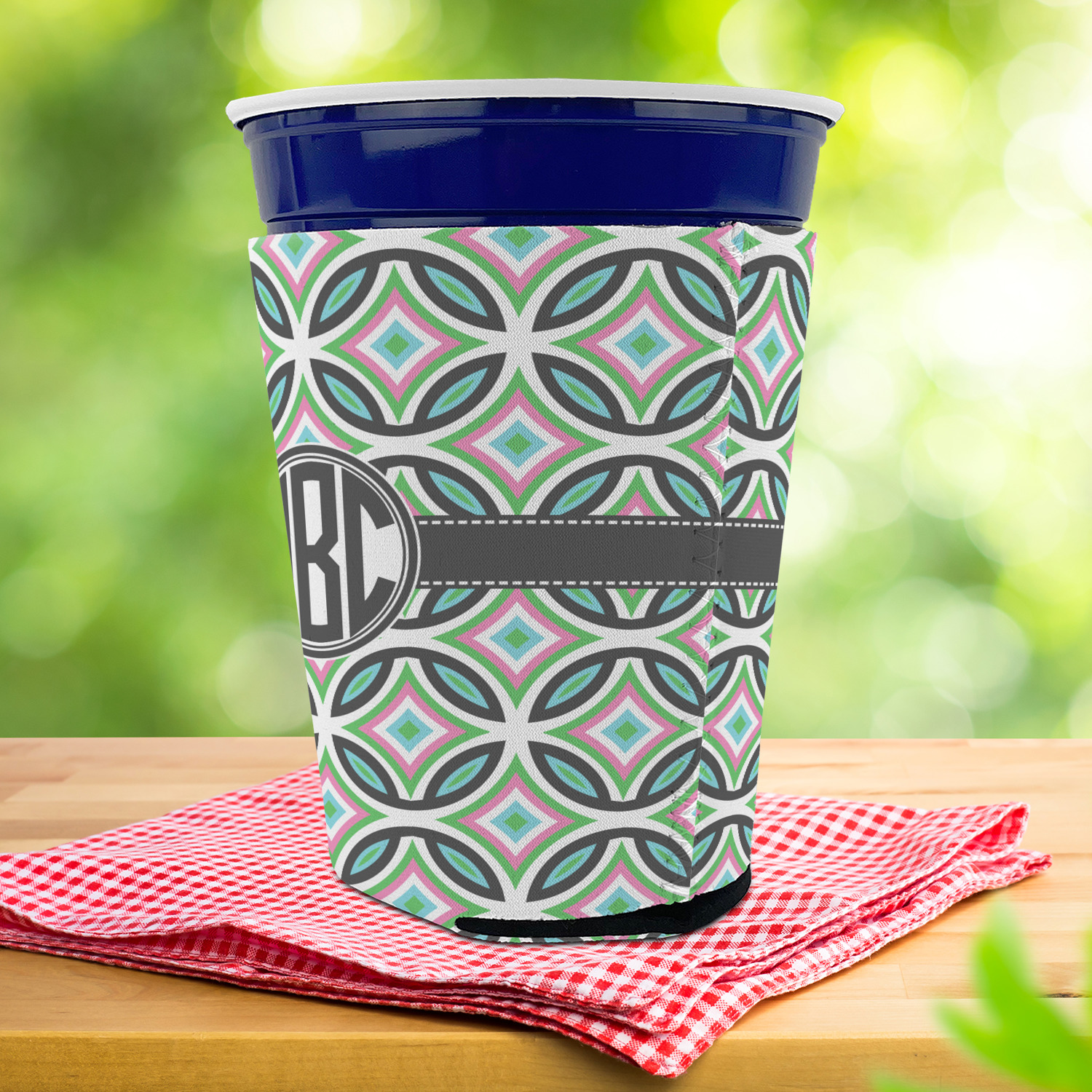 Made from neoprene with a polyester outer fabric and sewn seams, these premium quality party cup sleeves are very durable and will hold up to heavy use. They are available in 2 styles - with a bottom or just a sleeve to go around the outside of the tapered cup. The sleeve covers are about 4" tall and cover about 90% of the classic 16 oz. Solo cup.