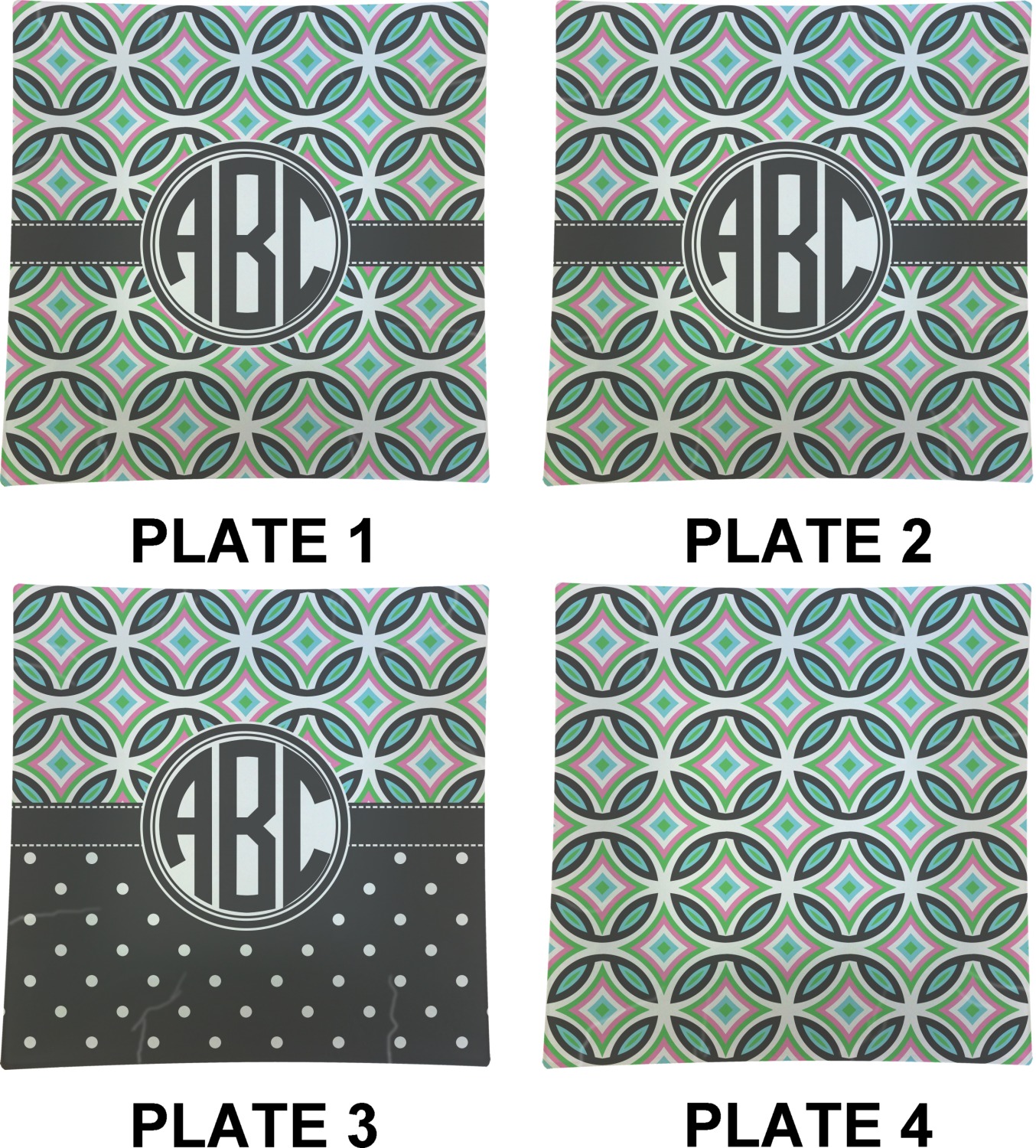 Circles Designs for Glass Square Lunch / Dinner Plates 9.5" - Set of 4