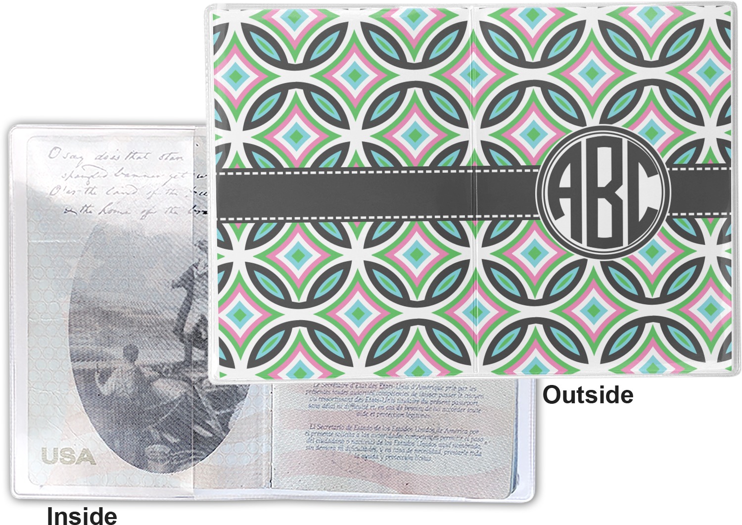 This cover is made of a sturdy clear vinyl with a personalized vinyl insert inside. There is a large and a small pocket on either side to hold the covers of your passport easily and firmly. The passport holder is approximately 7.5" x 5.25", the perfect size to snugly fit your passport. This slim cover is the perfect way to protect your passport without being one more bulky item you have to carry.