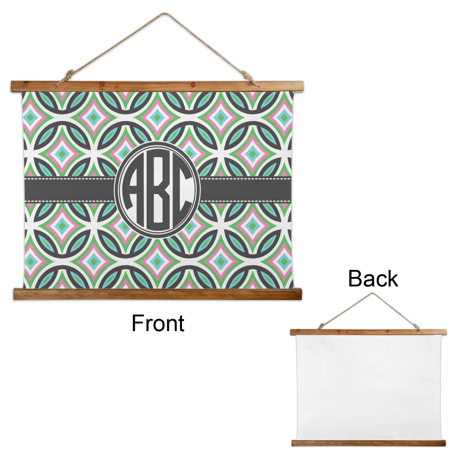 Made in two different orientations - portrait or landscape - both are 26" x 36". Your design is printed on a high quality polyester fabric with hemmed edges. The wood on the top and bottom of the tapestry is 1.25" tall and 0.25" thick and there are two pieces on top and bottom which sandwich the fabric.