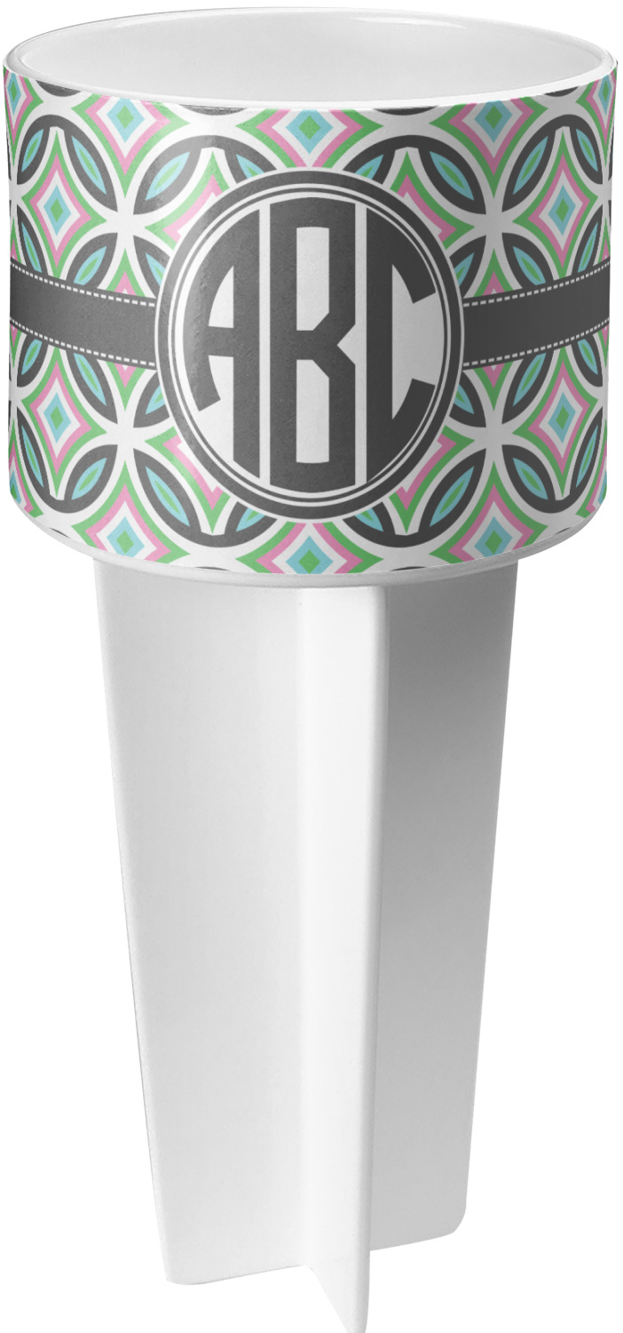 This cup holder has a large stake at its bottom that anchors it to the sand or ground below, while the cup holder rests above the stake. The entire drink holder is made of durable plastic and displays your customization around the cup holder portion. We sell these personalized beach spikers in two different colors: black and white.