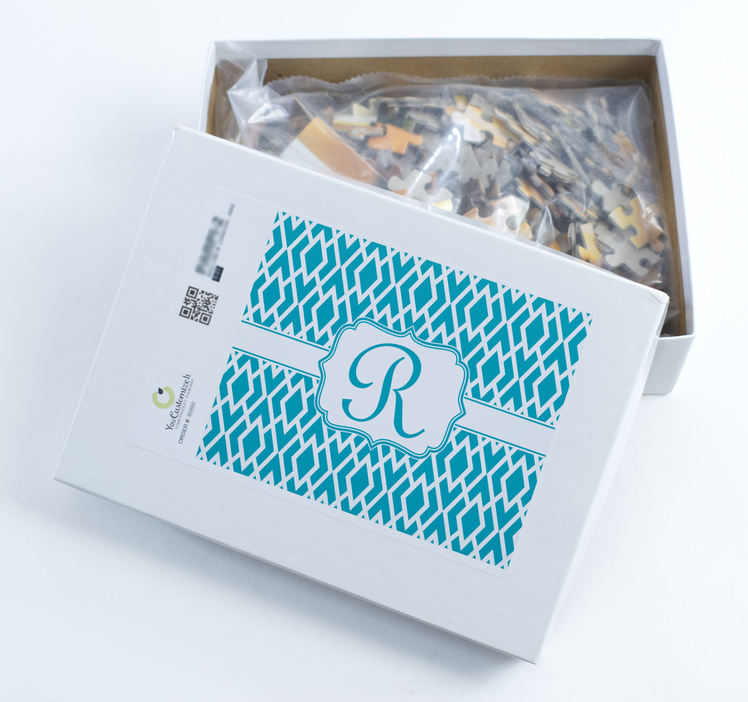 You can also upload your logo or art that you or your kids drew. To create more challenging jigsaw puzzles, you can create a pattern from with your logo or artwork. You can also add other elements such as text or personalization.