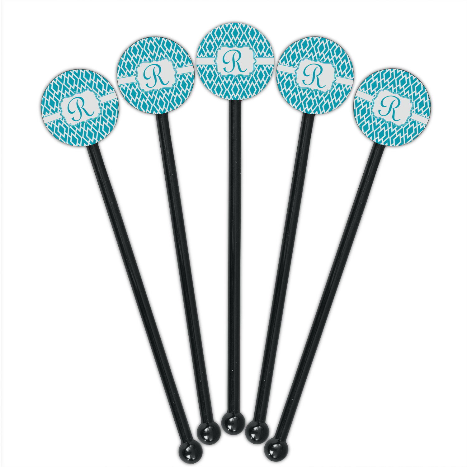 Shape + Symbol Designs for 5.5" Round Plastic Stir Sticks - Black - Single-Sided