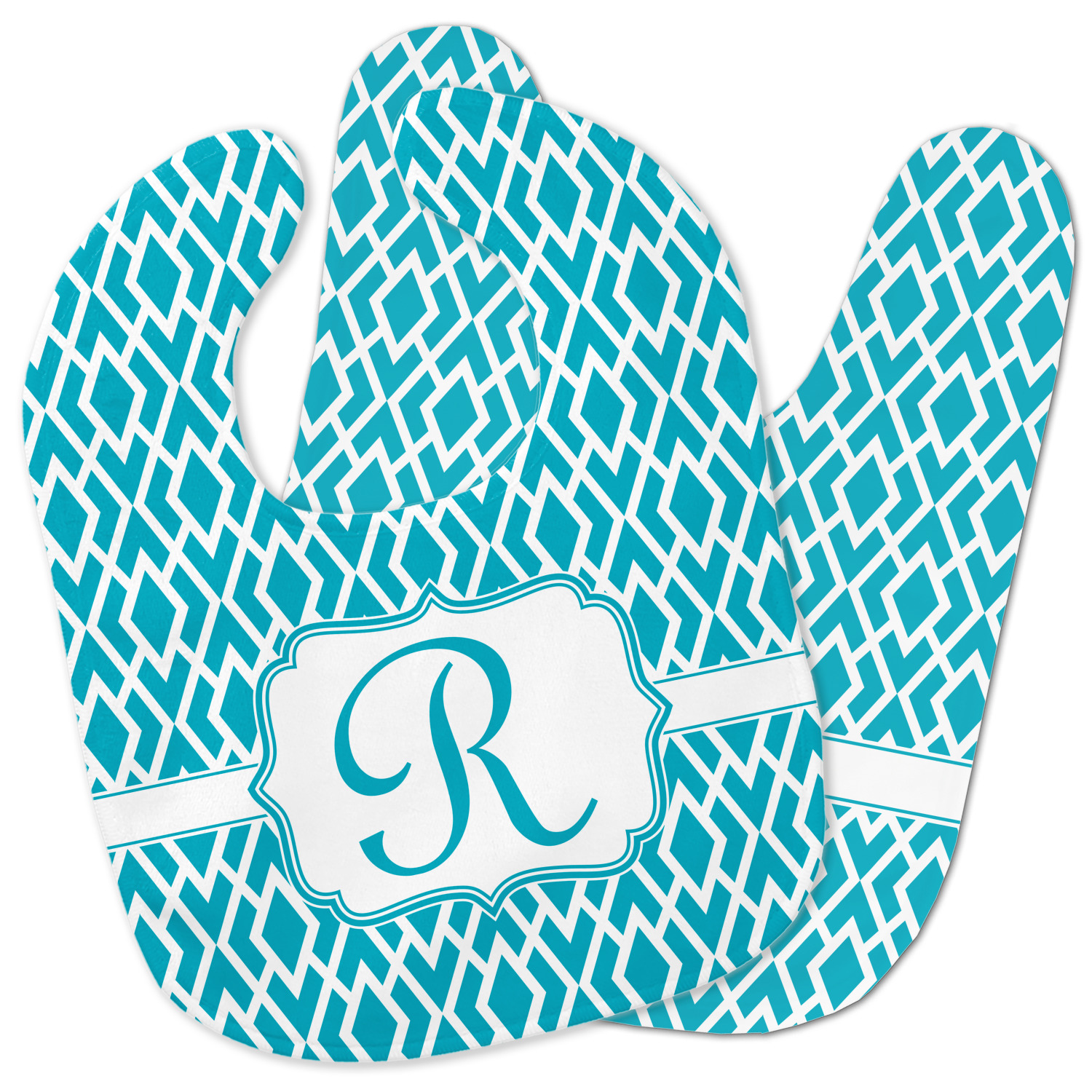 Made of soft polyester, each customizable bib hugs comfortably around the neck to catch every drip and drool. Each bib design is printed with baby-safe ink and finished with a secure stitch pattern and velcro clasp. We carry two customizable bib styles -Microfiber Velour and Jersey Knit.