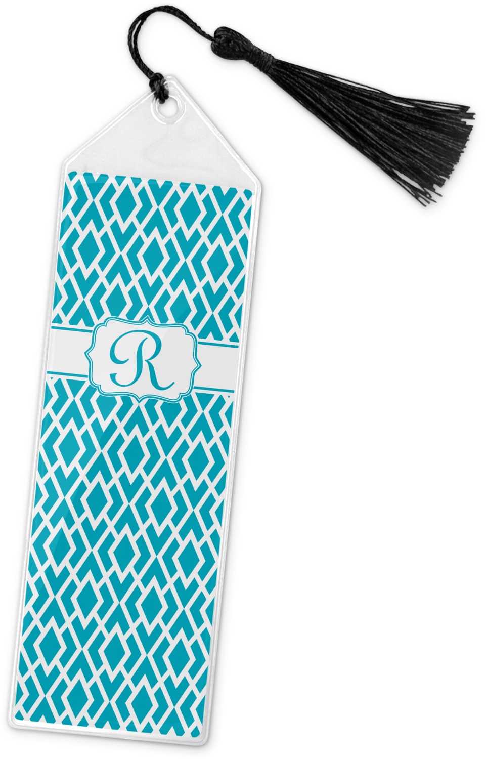 Your personalized bookmark is made of a sturdy, clear vinyl, and is approximately 7.5" x 2.25". We display your personalization on vinyl inserts that are placed on both sides. Accompanying each book marker is a black, fringe tassel that attaches to the reinforced, triangular header.