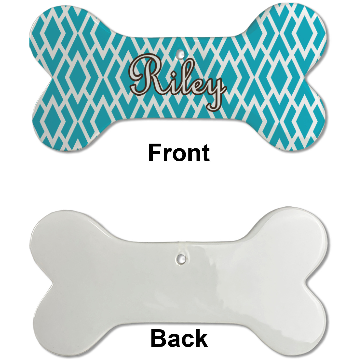 Our dog Christmas ornaments are a ceramic material with a bone-shaped structure hung horizontally. We offer two printing styles to personalize your furry friend's ornament! Choose a one-sided printing, perfect for wall decor, memorial accessory, or doghouse nameplate! Create a double-sided ornament perfect for adorning the Christmas tree. Each dog bone ornament is approximately 4.75" x 2.25" and is printed here in the USA.