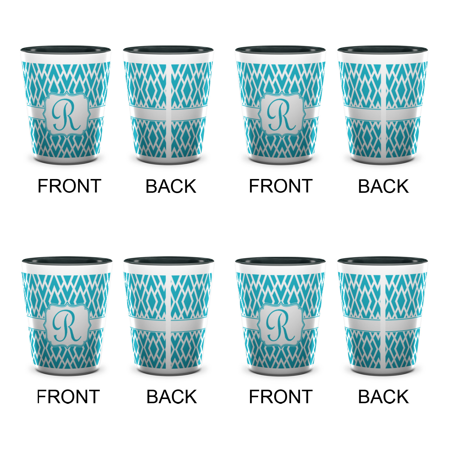 Shape + Symbol Designs for Ceramic Shot Glasses - 1.5 oz - Two Tone - Set of 4