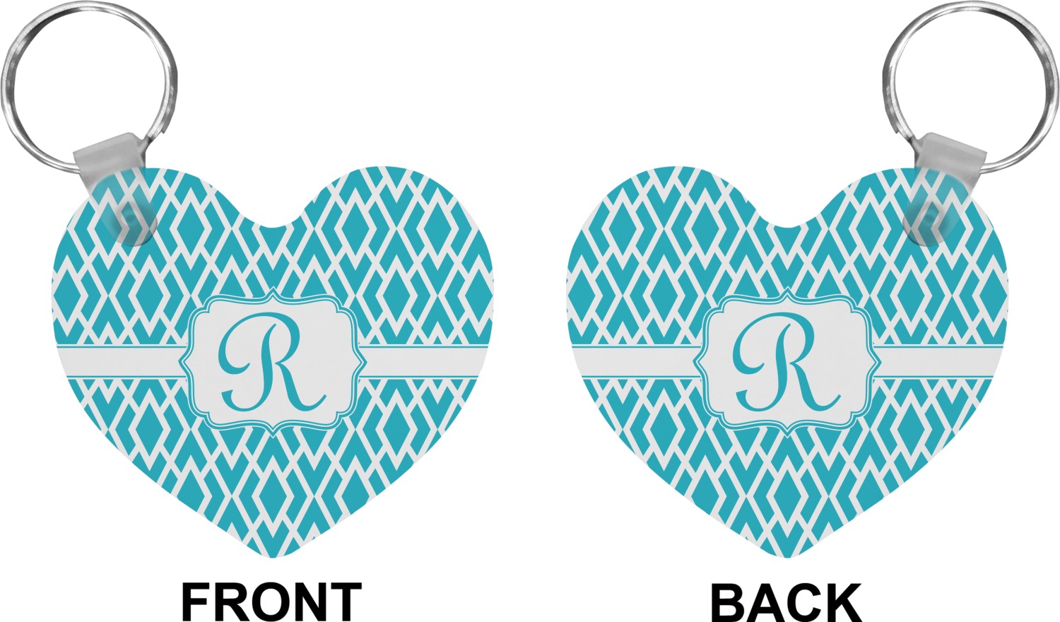 Our personalized keychains attach to the included metal, split key ring with a plastic, removable snap. Since a metal ring is included with your purchase, you have the liberty to keep your keys together on the ring, with or without your unique keychain. We offer this keychain in three different shapes: circle, heart, or diamond. We print your personalized design(s) on both sides of the key chain, and the surface has a glossy, reflective finish that only emphasizes your design. Each keychain is approximately 2.25 by 2.25 inches.