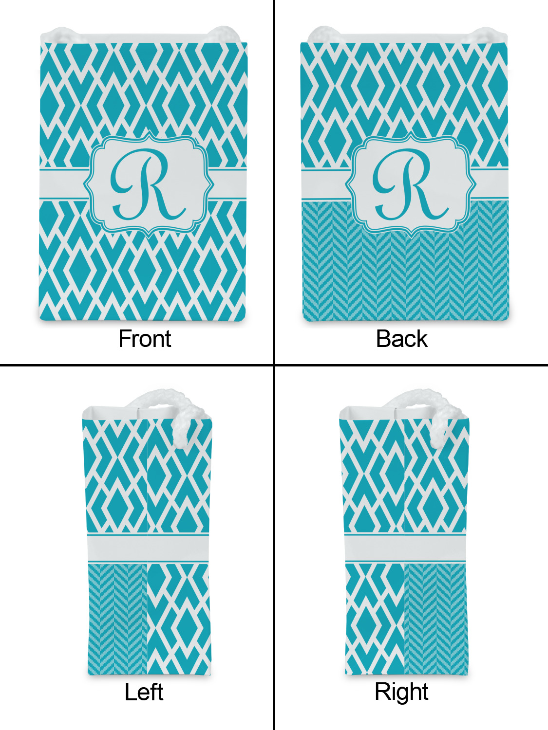 These jewelry gift bags are available in two finishes - matte or gloss. The are digitally printed in full color, then cut down to size, scored & folded. A single handle is attached.