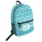This backpack is the classic style with a zipper pocket on the front and a large zipper opening on top. There is also a small handle on top for hanging or carrying. The backpack straps are adjustable, so they should fit on most people. They are approximately 17"H x 12.5"W x 5"D, which is plenty of room for books, writing utensils, a laptop, and more! On the outside is a mesh pocket that is perfect for a waterbottle.