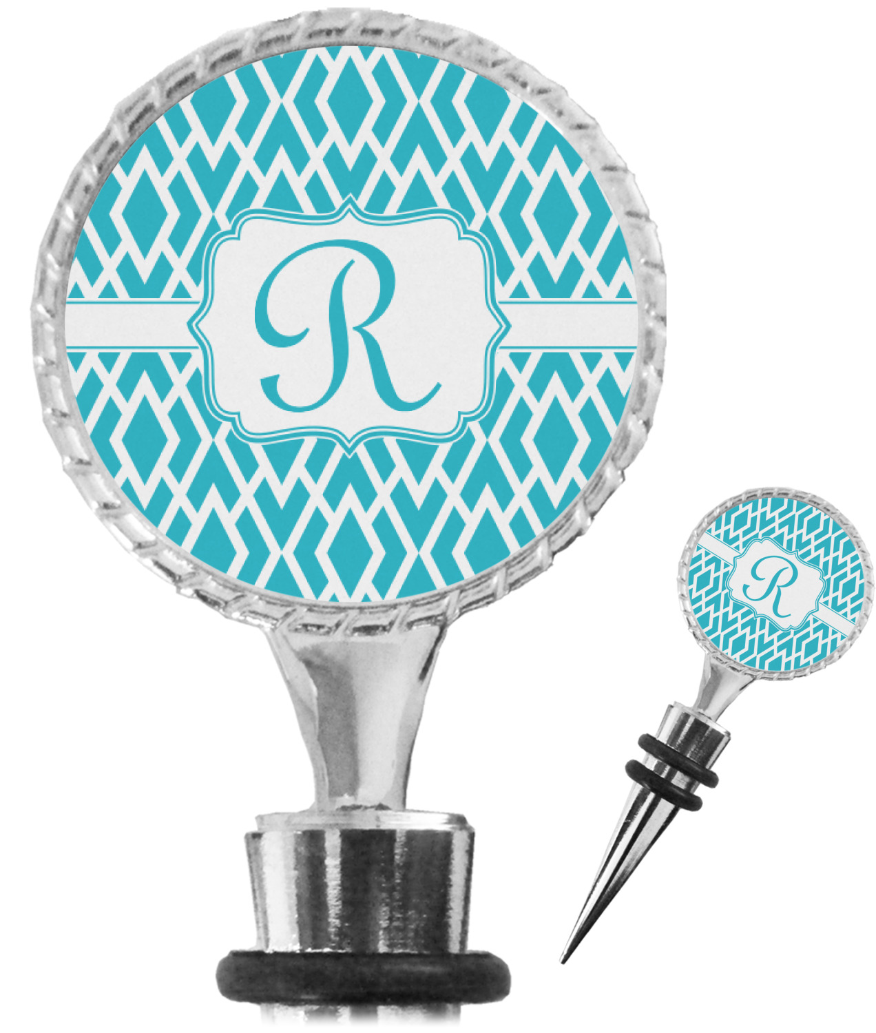 The top part of your bottle stopper is comprised of a zinc ring that displays your customization(s) in its middle, on both sides. The ring is heavy duty, with a bright chrome finish. The body of the wine stoppers have two silicone rings to provide an airtight seal. These wine bottle stoppers measure at 1.625" L x 0.8125" W x 4.625" H; your custom wine stopper is meant to fit into most standard-sized wine bottles.