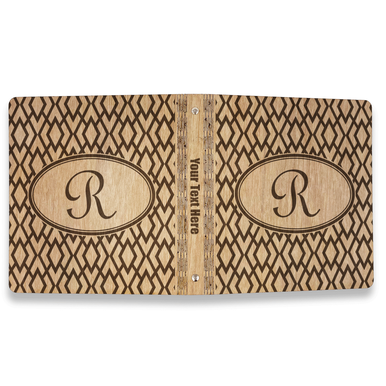 Made from premium hardwood, these are laser engraved then polished with wax to give a nice sheen and smooth feel to the product. The inside of the binders are finished with a faux leather material which is bonded to the inside of the wood to strengthen the wood and give the inside the same refined finish. The rustic brown and gold leather material adds a nice classic touch to the binders.