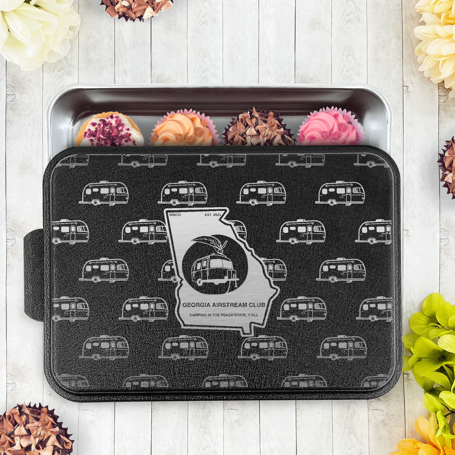 With the lid laser etched with the design of your choice these get the fully customized touch unique to you. The possibilities are endless when you go to design your own cake pan lid. With our design library you can make the design of your dreams come true.