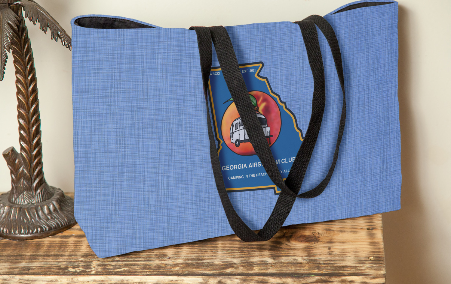 These beach totes are handmade here in the USA. Fabric is printed with your design. The tote is then sewn from the fabric pieces, lining and handles added.
