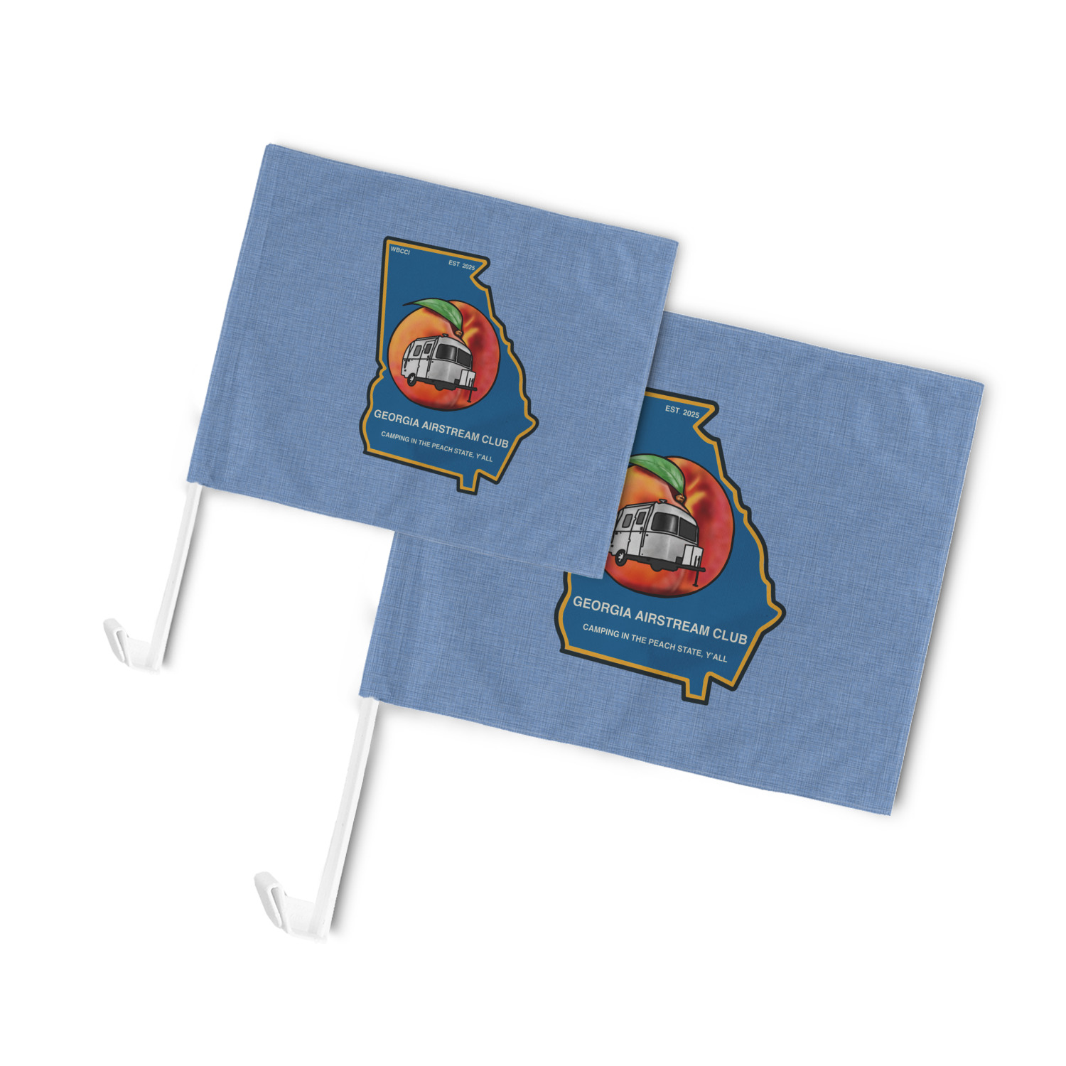 Our personalized flags are made from a durable, yet lightweight cloth that will proudly bear your logo or design of choice, while withstanding the outside elements. We have two size options - 8" x 11" and 11" x 15". Both come with a flag pole which includes a clip that secures the pole to the side window, whether it is rolled up or down. The flags are printed on both sides to display your design from all directions.