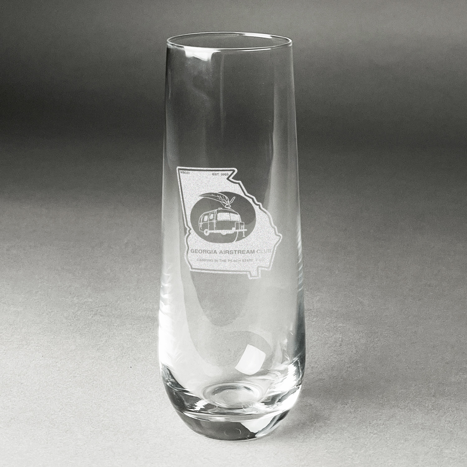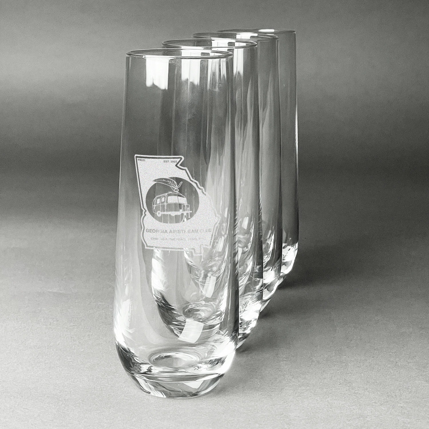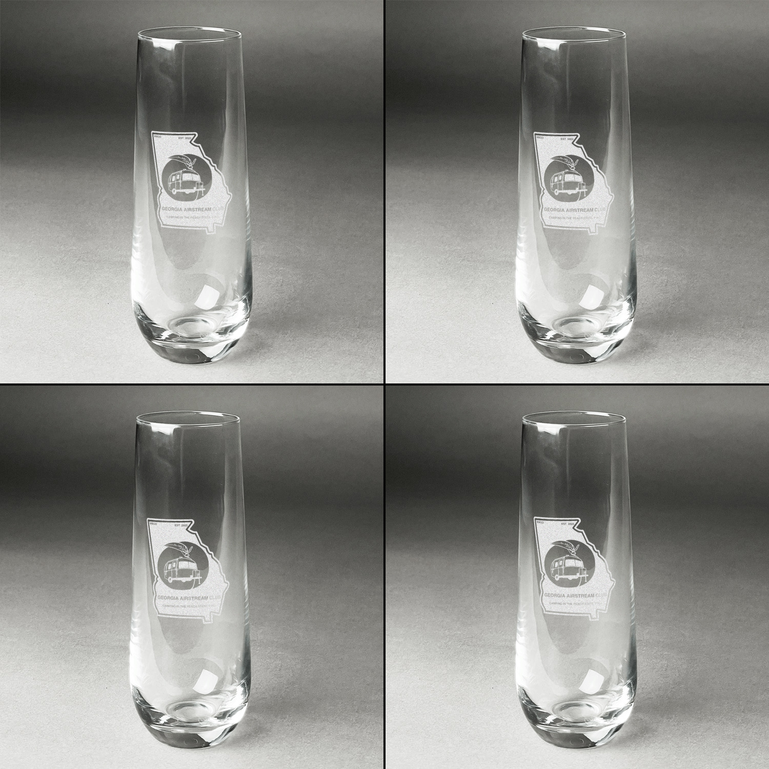 Design your custom stemless champagne flutes and we will then laser engrave your unique design on them for you. Whether they are a special gift for a bride and groom, for your New Years Eve party, or a bachelorette party you are sure to be able to add a custom personalized touch to make them perfect for the occasion.